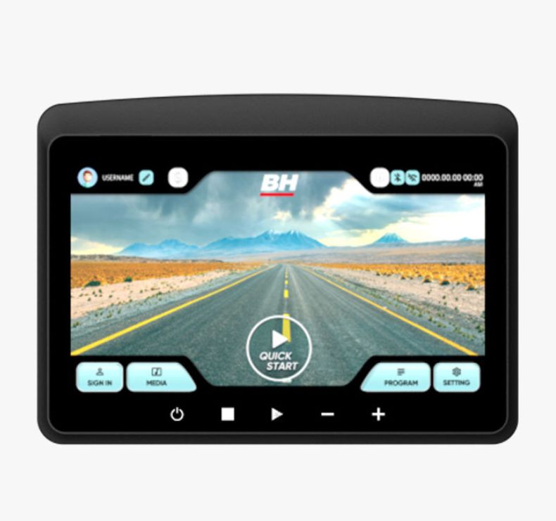 • Pantalla táctil de 16 pulgadas que permite ver contenido multimedia (YouTube, Netflix, Spotify, etc.) mientras entrenas.