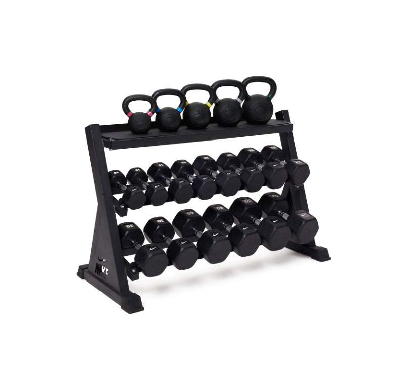Soporte para mancuernas y kettlebells Nike Strength Nike Strength El Nike Kettlebell and Dumbbell Storage Rack mantiene tu espacio de entrenamiento organizado y sin desorden. Mancuerneros SDKS-1199 10024803